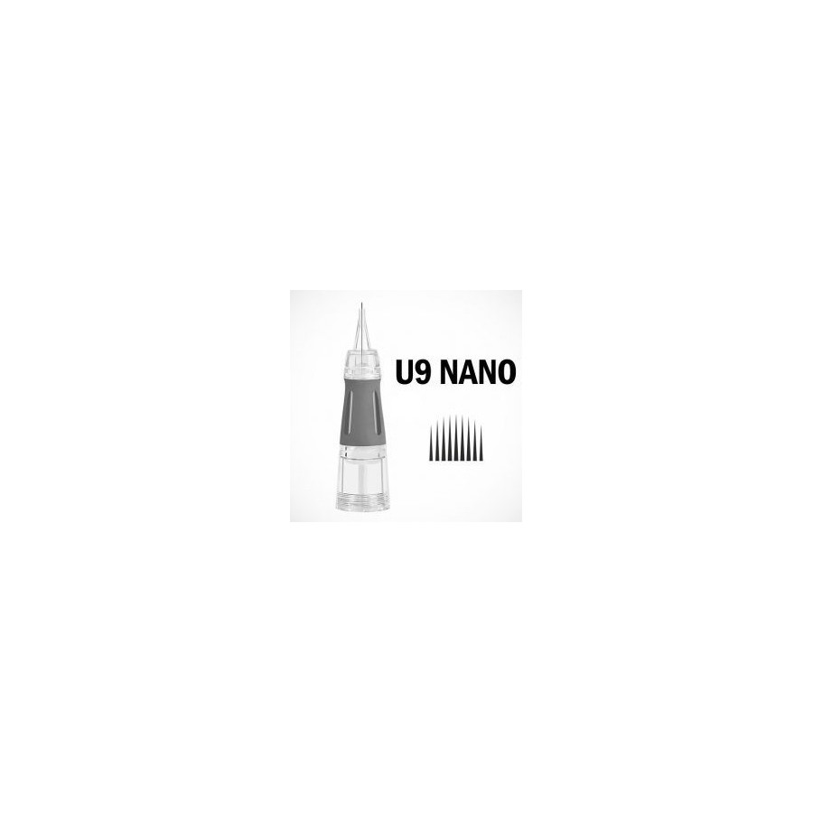 U9 ihly sa vyznačujú tvorbou dokonalých jemných línii s pravidelnou výplňou pigmentu v koži. Artistky ich využívajú pre techniku čiarkovaného obočia. Cartridge pripomína čepieľku na microblading, ale s tým rozdielom, že nepracujete manuálne ale digitálne. Výsledkom je perfektne vytvorený sýty chĺpok bez traumatizovania kože a nutnosti opakovaných prechodov. Krásne obočie - bez jaziev a nutnosti korekcií. Cartidge možno použiť aj na tieňované techniky výplne pier.